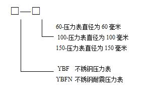例:YBF-100 0-1MPa 直徑為100毫米,測(cè)量范圍0-1MPa的不銹鋼壓力表