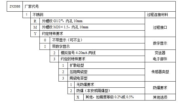 ZY2088擴(kuò)散硅壓阻型壓力變送器是本公司壓力變送器系列中的經(jīng)濟(jì)型產(chǎn)品,是高可靠性、長(zhǎng)期穩(wěn)定性和易于維護(hù)的設(shè)計(jì)。結(jié)構(gòu)安全、可靠、耐用。ZY2088繼承了ZY51系列的設(shè)計(jì)傳統(tǒng),為雙室外殼設(shè)計(jì)。雙室外殼令電子線路與外部環(huán)境相隔離,可防止由于環(huán)境潮濕或?qū)Ь€管冷凝損壞變送器。另外,即使在傳感器膜頭完全損壞時(shí),雙室結(jié)構(gòu)也可以保證接線端子及導(dǎo)線管與過程相隔離。隔離膜片將壓力傳給硅壓阻式壓力傳感器,傳感器內(nèi)充有硅油。對(duì)于表壓變送器,傳感器的參考?jí)毫榇髿鈮海粚?duì)于絕壓變送器,傳感器的參考?jí)毫κ且粋€(gè)密封的真空參考源。過程壓力加在傳感器的傳感膜片上,令膜片產(chǎn)生一個(gè)微小變形,這會(huì)給予傳感器內(nèi)的惠斯登電橋施加一個(gè)應(yīng)力,使惠斯登電橋產(chǎn)生應(yīng)變電阻變化,電阻變化被測(cè)量,并轉(zhuǎn)換為一個(gè)4~20mA直流電流變化被輸出。